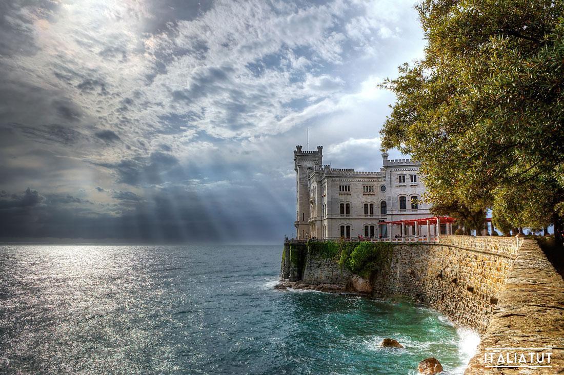 Слегка отдалившись от Триеста и приблизившись к заливу Мирамаре, турист обнаружит одноимённый замок, выстроенный в середине позапрошлого века — величественный, белоснежный и в меру асимметричный. Кастелло-ди-Мирамаре стоит на высоком утёсе, врезающемся в залив, а сзади к нему примыкает огромный зелёный парк площадью более 20 гектаров; закончив с осмотром здания, путешественник может в своё удовольствие погулять среди деревьев, попробовать силы в верховой езде или отобедать в местном кафе.