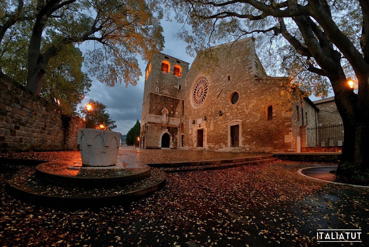 С площади Единения Италии открывается великолепный вид на море. На ней находится Дворец Коммуны и Дворец Ллойд, гостиница и Дворец Питтери (Palazzo Pitteri) 18 в., Дворец Стратти (Palazzo Stratti) и Правительственный дворец (Palazzo del Governo). Спускаясь вниз, попадаешь в лабиринт старинных улочек, бурлящих жизнью, с трактирами и ресторанчиками. Холм Святого Джусто (colle San Giusto) – самая старая часть города, до 18 в. окруженная стенами. Рядом церковью Святой Марии стоит базилика Святого Сильвестра. Чуть дальше – Арка Риккардо (Arco di Riccardo) – одни из античных ворот эпохи Октавиана, вилла Панчера (Villa Pancera) 19 в. и институт Кардуччи. Еще чуть дальше расположен Государственный музей истории и искусства (Civico Museo di Storia e Arte). Он хранит археологические находки, в основном, 19 в. и располагающий залом с монетами и залом печатей и рисунков.