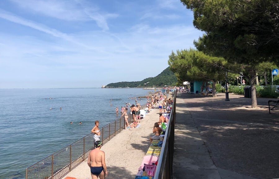 Территория делится на две части: первая предназначена для купания, вторая — для прогулок на яхтах. На пляже работают рестораны с итальянской и словенской кухней — до славянской страны отсюда рукой подать.