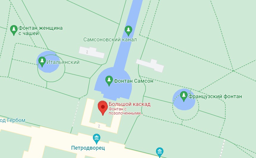 Карта Петергофа с фонтанами