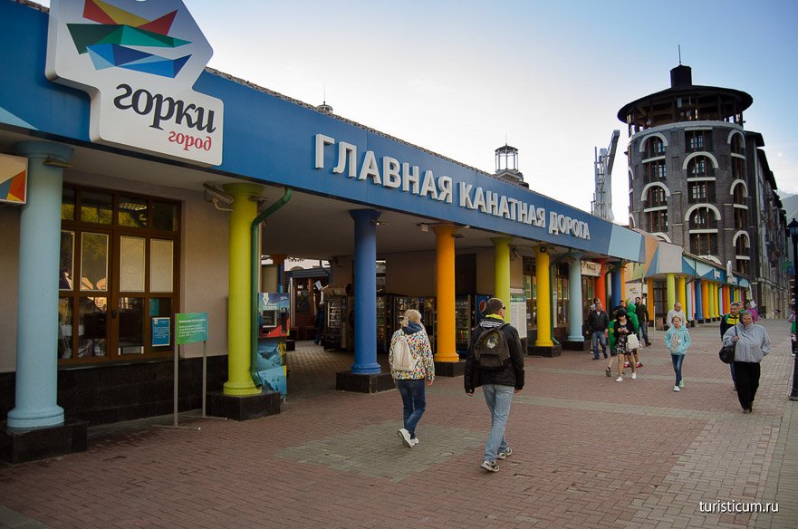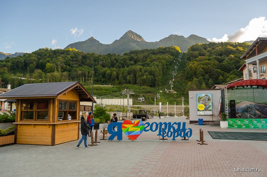Это тусовочный центр, главная артерия курорта. Комфортное размещение предлагают пятизвездочный отель «Сочи Марриотт Красная Поляна», четырехзвездочная гостиница «Горки Плаза», пафосные «Апартаменты Горки Город 540».