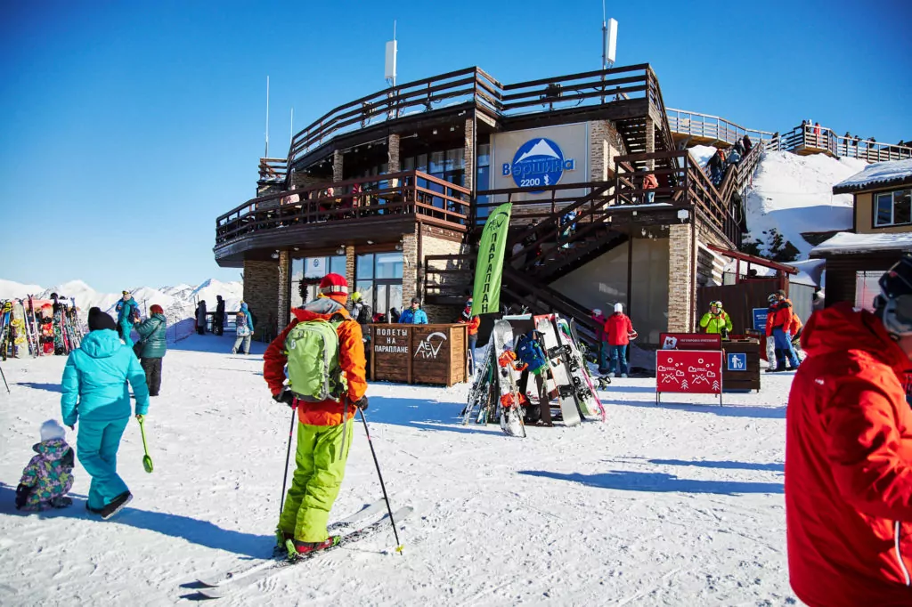 - На курорте «Альпика Сервис», на станции «Приют Ветров» есть ресторан «Дотянуться до небес» с довольно доступными ценами. Советуем попробовать хачапури, он у них всегда свежий!