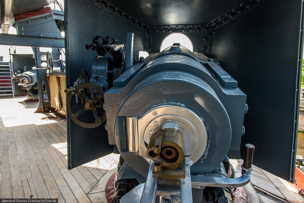 Однако, существующая авроровская коллекция 152-мм орудий системы Канэ по своему уникальна – здесь есть и орудия броненосца “Ростислав” 1896 года постройки, и орудия, когда-то стоявшие на береговых батареях Севастополя.
