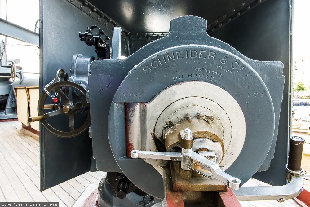Откуда “Шнейдер” на “Авроре”? Дело в том, что во время послевоенной реконструкции орудия для “Авроры” собирали, что называется, “с миру по нитке”. Найти 14 орудий Обуховского завода не получилось.