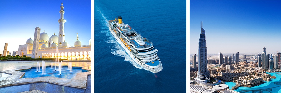 Туристы могут воспользоваться предложением круиза на новом лайнере. Одно из предложений в этом списке – «Чарующий вояж». Круизный лайнер компании «Аида» отходит из Дубая, заходит в Маскат (Оман), после чего отправляется в Абу-Даби (здесь туристы проводят ночь на борту, а утром можно отправиться на экскурсию). Завершающий этап – это прибытие в Дубай, где снова будет остановка на ночлег и утренняя швартовка.
