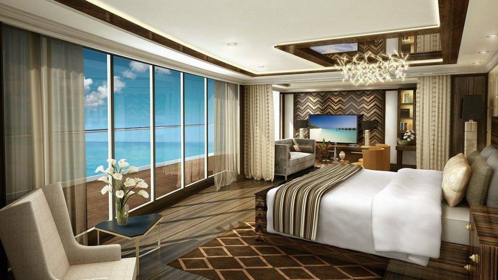 - Сьюты, пентхаусы и люксы – каюты, обычно расположенные на самых верхних палубах, имеющие площади по 100-150 м2, часто в нескольких уровнях, с собственными верандами для отдыха, мини-бассейнами, роскошным убранством и огромным разнообразием дополнительных сервисов. Количество подобных номеров редко превышает 10 единиц, и используются они для самых взыскательных и состоятельных пассажиров, предпочитающих эксклюзивный отдых.