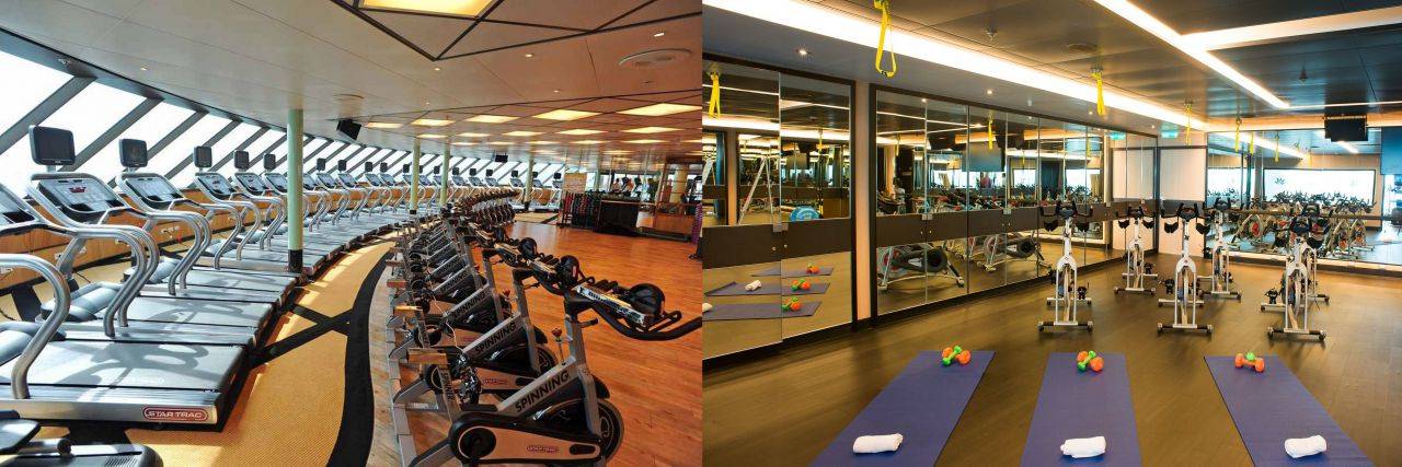 Тренажерный зал на лайнере Caribbean Princess и зал для групповых занятий на лайнере Royal Princess