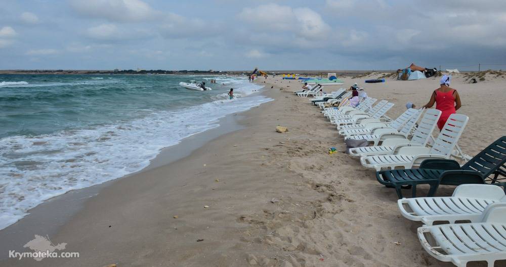 Крымские Мальдивы или русские Мальдивы в Крыму – это длинные пляжи в окрестностях Оленевки и Мирного, на косе Беляус и Бакальской. Они покрыты светлым песком, вход в море пологий, поэтому вода прогревается в этих местах очень быстро. Сами волны чистые и отличаются особым голубым оттенком. Здесь отмечается самое большое количество солнечных дней в году, то есть загорать можно и в начале весны или осени. Даже есть изюминка: когда вода хорошо прогревается, она ночью светится салатовым светом, за счет водоросли ночесветка. Легкий бриз приносит на берег прохладу с моря, его запах. Или тепло со степей, которые уходят вглубь полуострова.