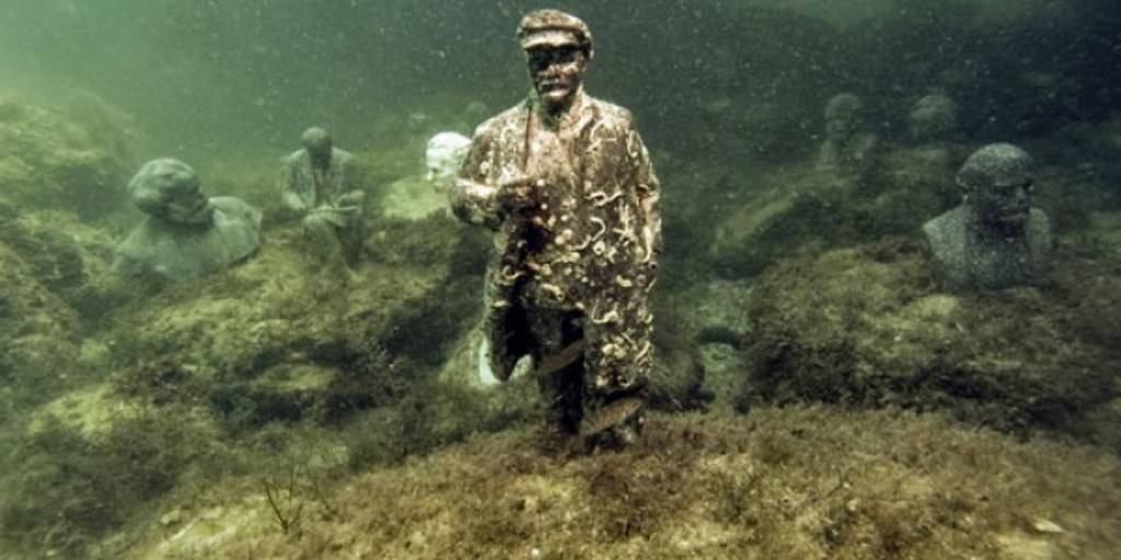 Именно здесь, на глубине 13 метров и вдали от берега на расстоянии 70 метров, расположен подводный музей «Аллея вождей», который постоянно пополняется новыми находками.