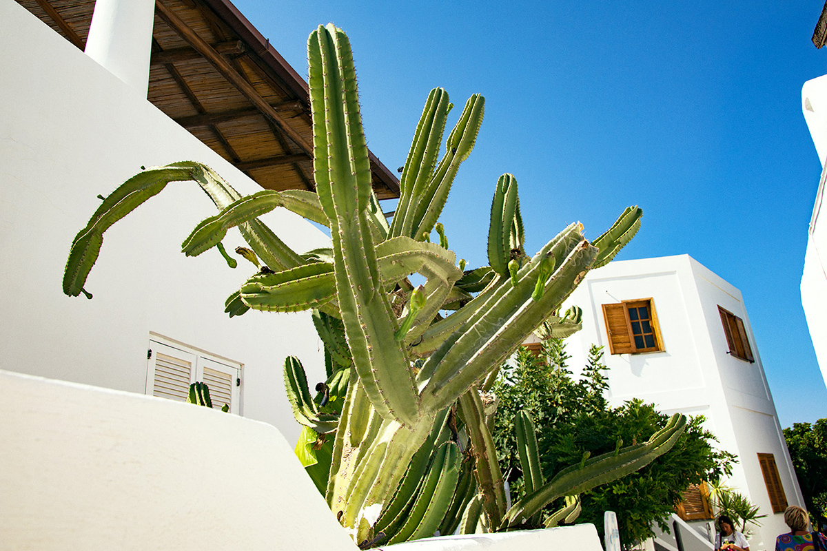 Небольшой отель в средиземноморском стиле. Пляж песчаный, на первой линии, с пологим входом, два шезлонга и зонт на двухместный номер предоставляются бесплатно, а вот бассейна нет и парковка — только за деньги.