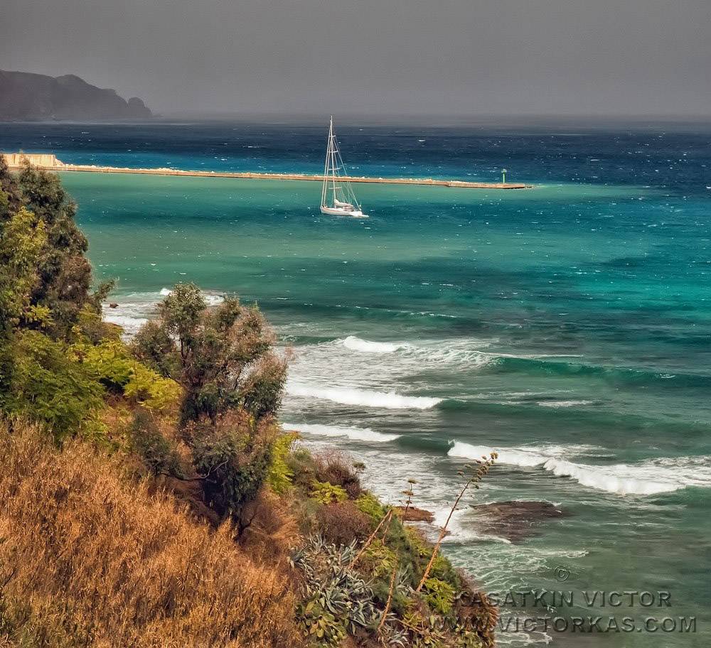На следующий день, с утра штормило. Нет, не меня штормило, а средиземное море. По небу гуляли тяжелые тучи, по морю “барашки” и волны.