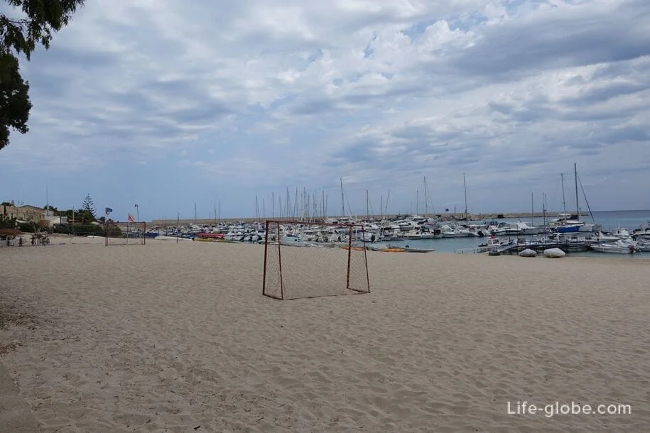 Двигаясь на юг от пляжа, вам встретится небольшой яхтенный порт, за которым расположены баскетбольные, футбольные и волейбольные площадки, а также дайвинг центр.