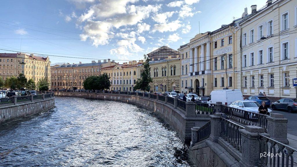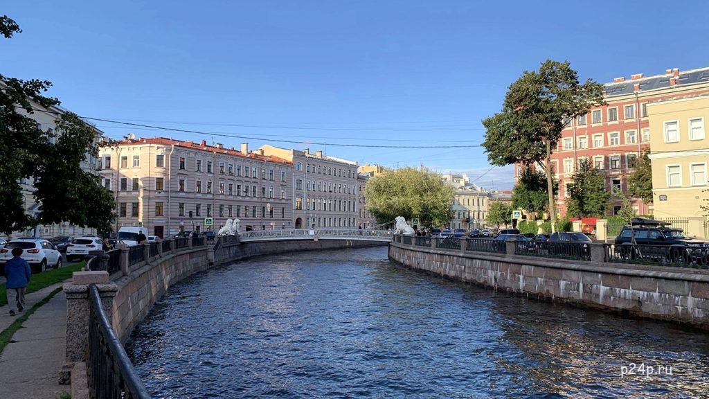 Перпендикуляром к Пантелемоновскому построен Первый инженерный мост, здесь — поворот с Фонтанки и прямо в Мойку, к Чижику-пыжику.