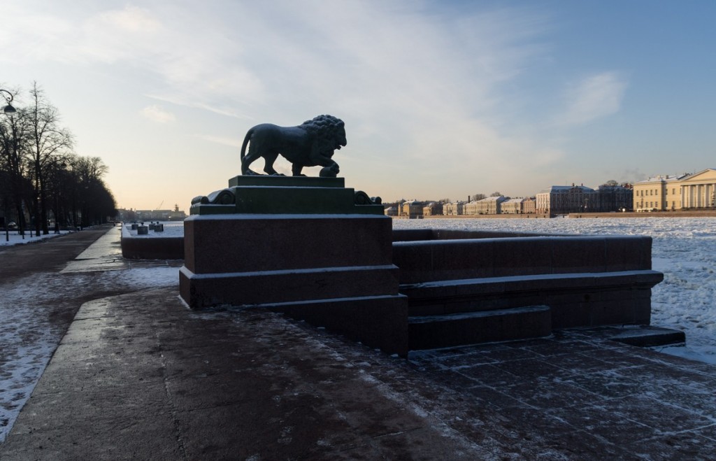 В 1832 году верхняя лестничная площадка была украшена скульптурными изображениями львов, благодаря которым пристань получила название спуск со львами у дворцового моста