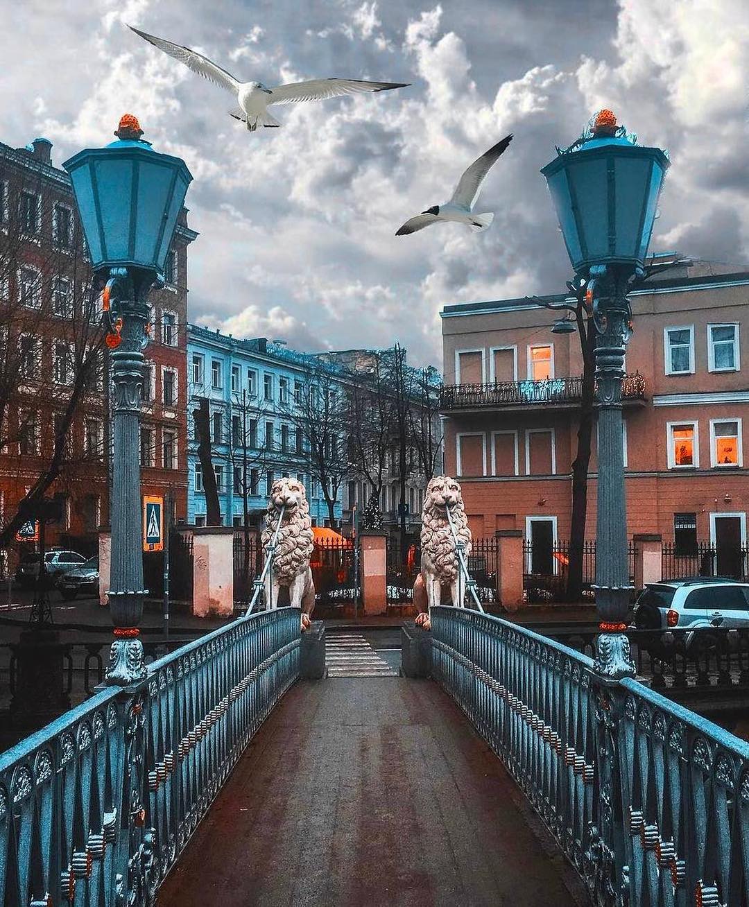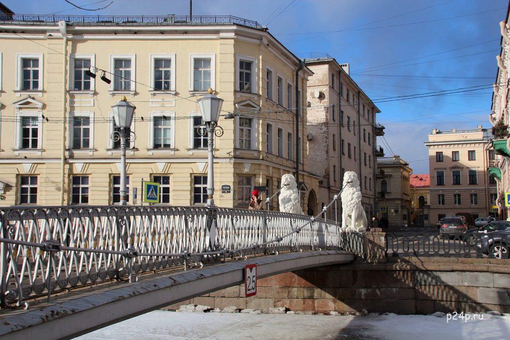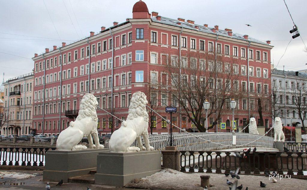 Мост со львами в Санкт-Петербурге выглядит на этом месте особенно символично. Он соединяет Малую Подьяческую улицу с Львиным переулком.