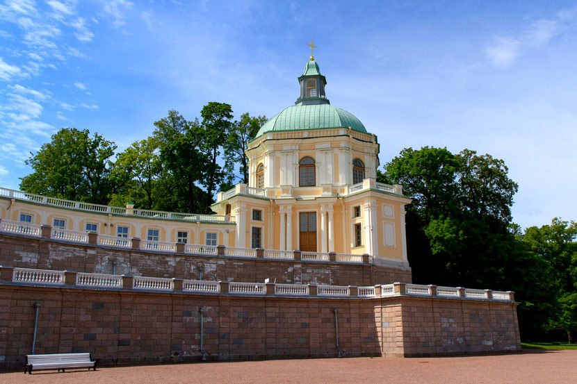 Старейшее здание Ораниенбаума стоит почти у самых вод залива. Представительные фасады обращены к морю, поэтому во дворце отчетливо ощущается дух начала XVIII столетия, когда Россия утверждала себя, как морскую державу.