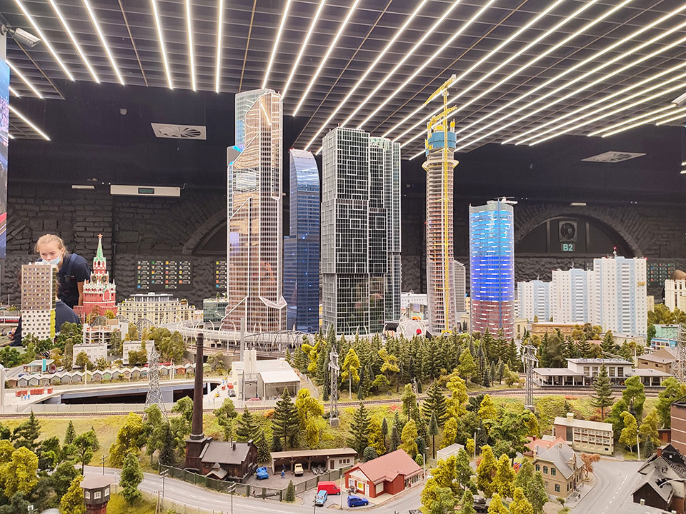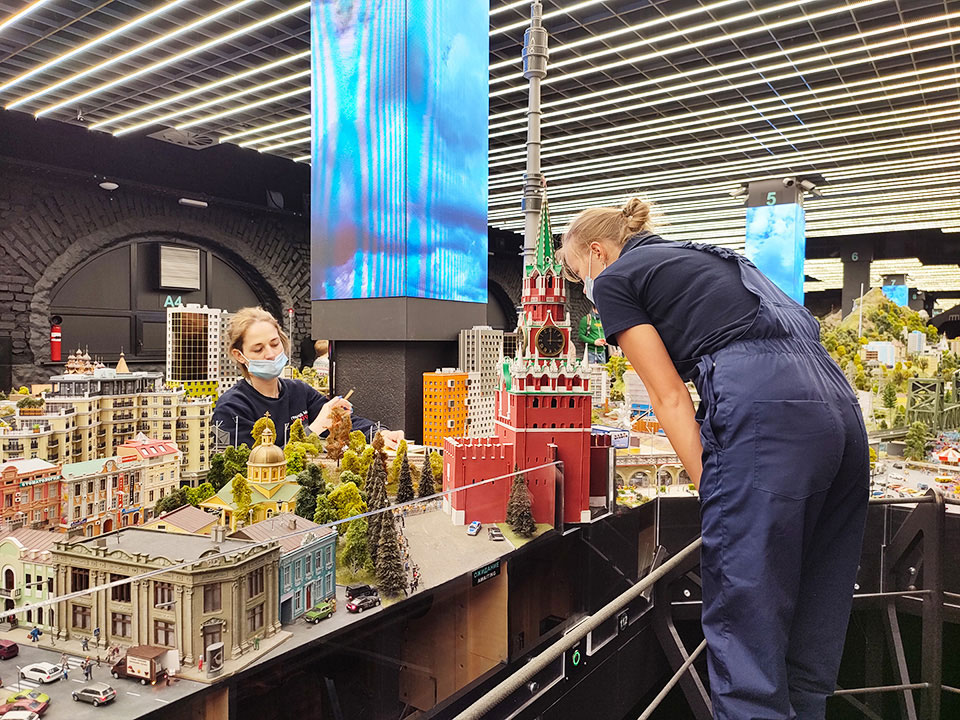 Чтобы как-то минимизировать количество этих поломок за зрителями наблюдает целая команда техников. Если от вас исходит какая-либо угроза для макета, то тут же по громкой связи вам сделают замечание. Поэтому ничего нельзя трогать – нужно за всем просто наблюдать и наслаждаться задумкой автора.