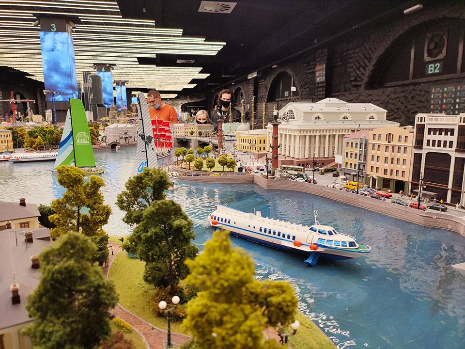Динамику макету придают железнодорожное и автомобильное движение. Более двух сотен железнодорожных составов, передвигающихся по железной дороге длиною в 2,5 тысячи метров. А эти корабли и теплоходы? На миг закрываешь глаза и мысленно переносишься на их палубы и путешествуешь, любуясь историческими зданиями, парками, фигурами беззаботно гуляющих людей…