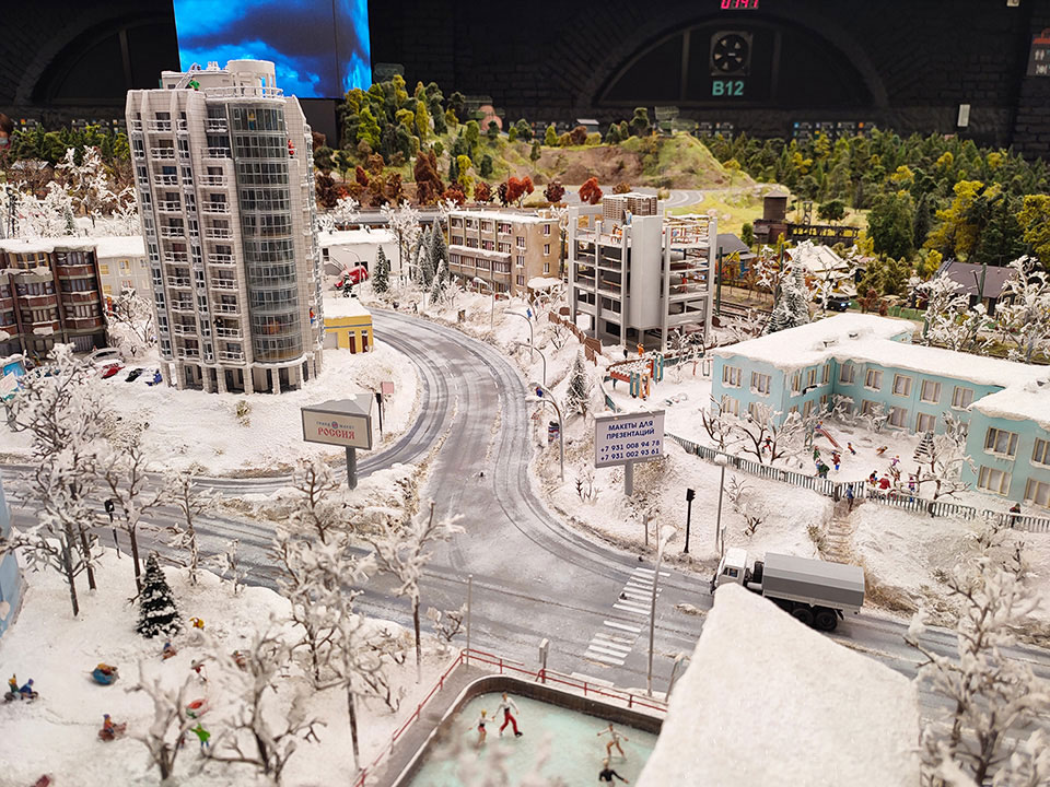 Музей представляет собой огромный макет, где на площади 800 квадратных метров представлены в миниатюре самые разные регионы России и сценки из повседневной жизни.
