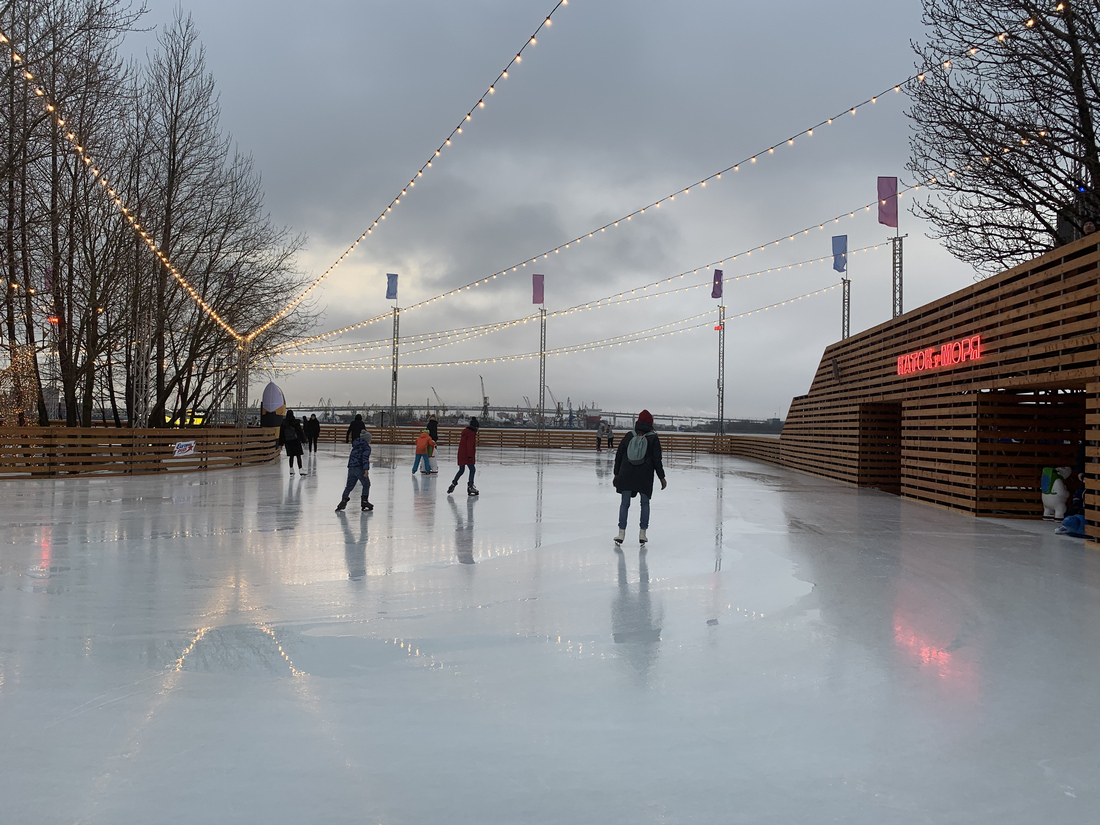 Севкабель — модное пространство на территории бывшего завода на Васильевском острове. Его главное преимущество заключается в расположении на берегу залива, где всегда бывают красивые закаты. Сюда стоит зайти ради необычных кафе и, конечно, катка.