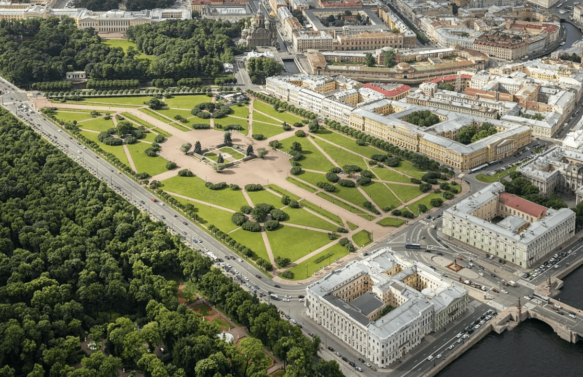 В одном из красивейших городов России есть парк Марсово поле – это отличное место отдыха, находящееся у Троицкого моста. С виду парк и правда напоминает поле: при рассмотрении сверху можно обнаружить, что оно прямоугольное и имеет симметричные дорожки. При царях здесь были военные парады, отсюда такое название.