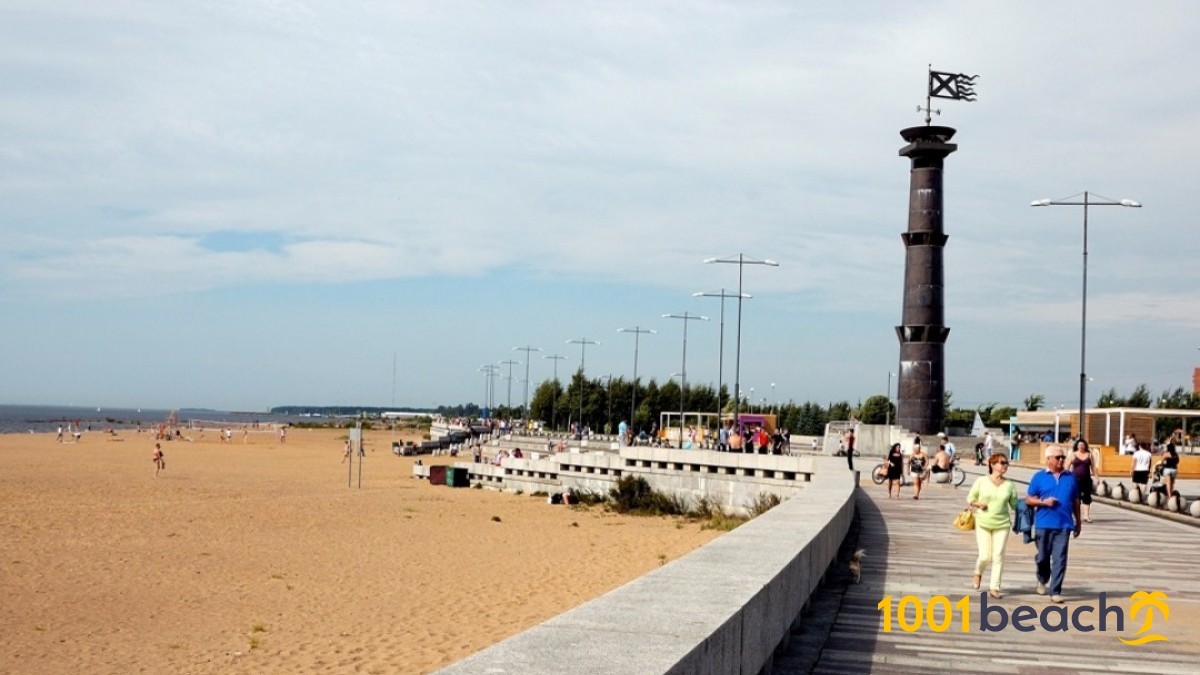 На вымощенной тротуарной плиткой центральной аллее парка, около самого Финского залива, возвышается двадцати двух метровая колонна, стилизованная под маяк.