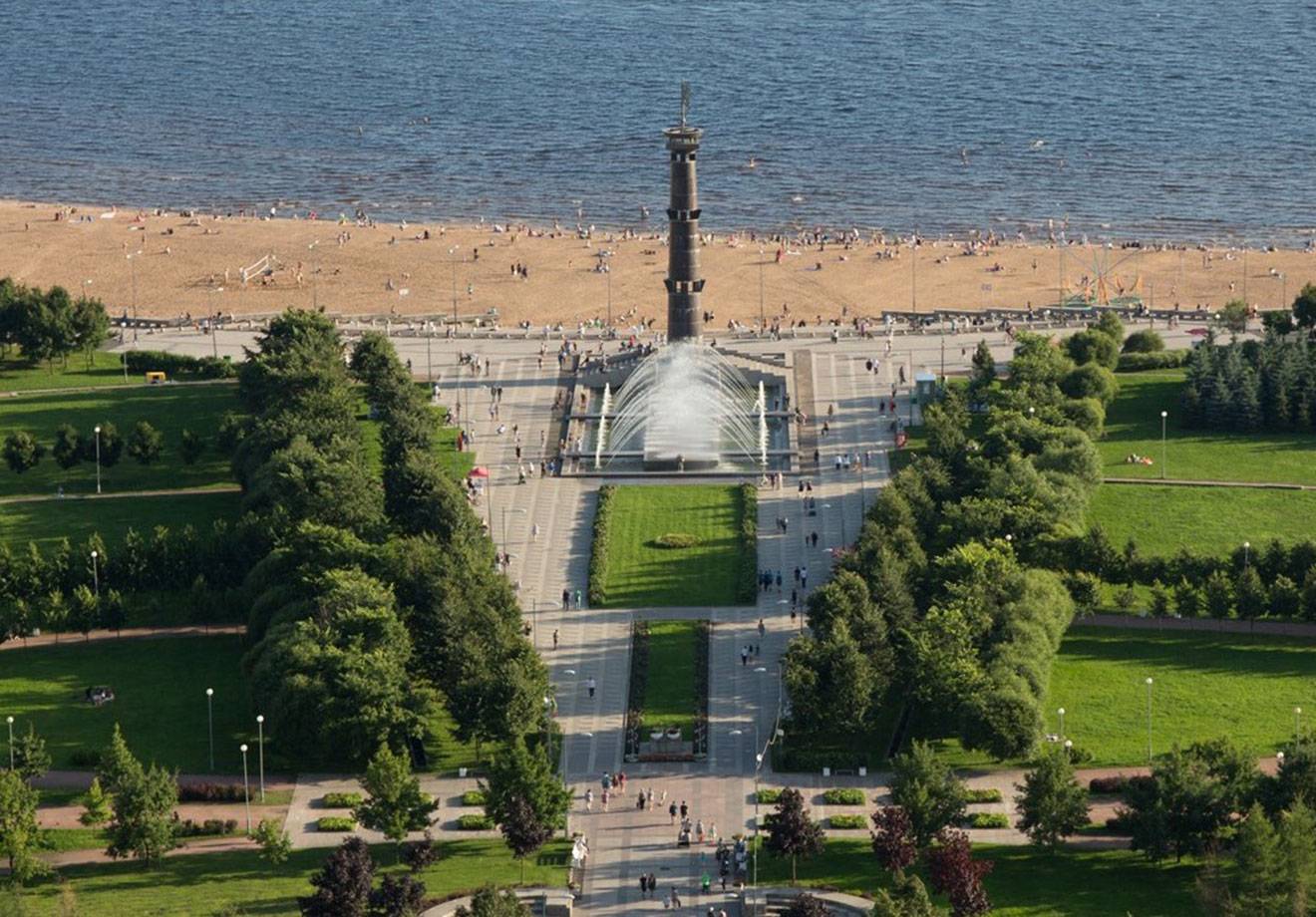 Территория Парка 300-летия включает большую «зеленую» зону и песочный пляж с видом на Финский залив.