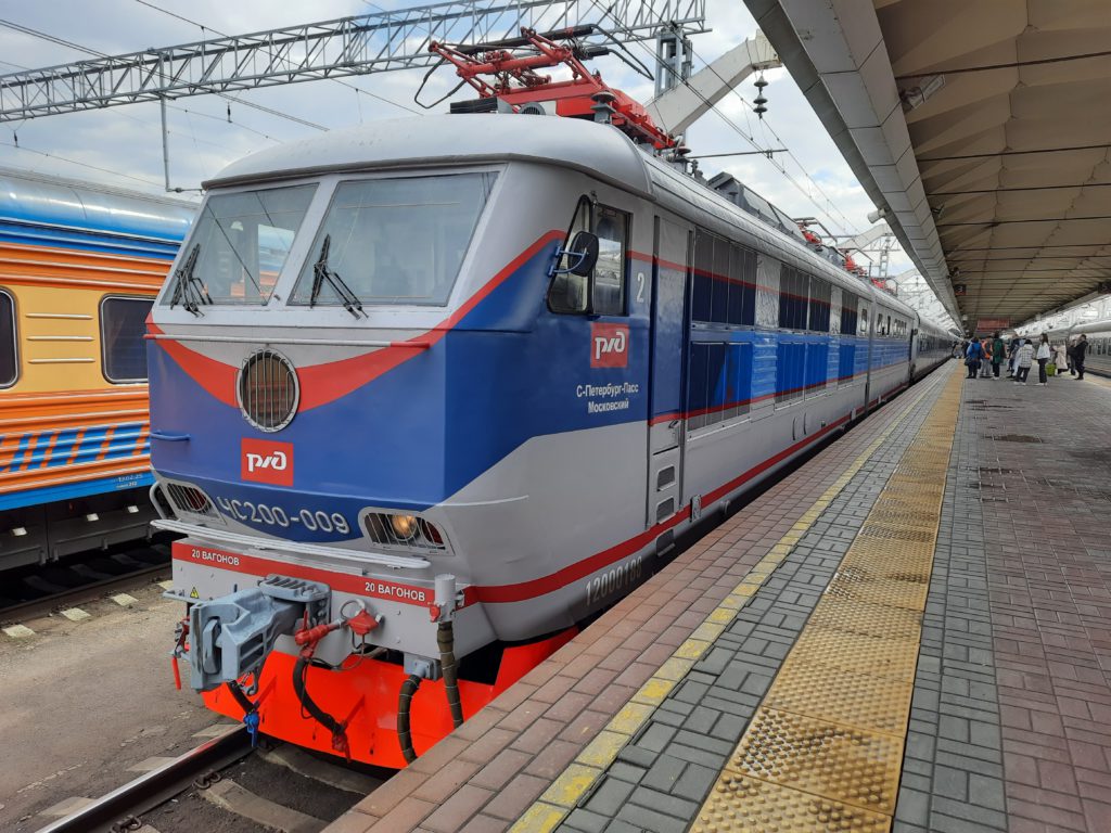 «Невский экспресс» прибыл на Московский вокзал в 9:47, а на 13:30 было назначено отправление обратного рейса. Это более интенсивное использование подвижного состава. До ремонта поезд совершал по одному рейсу в день, а теперь по два. В обратную сторону поезд шел уже с обновленным электровозом ЧС200 в той самой новой ливрее.
