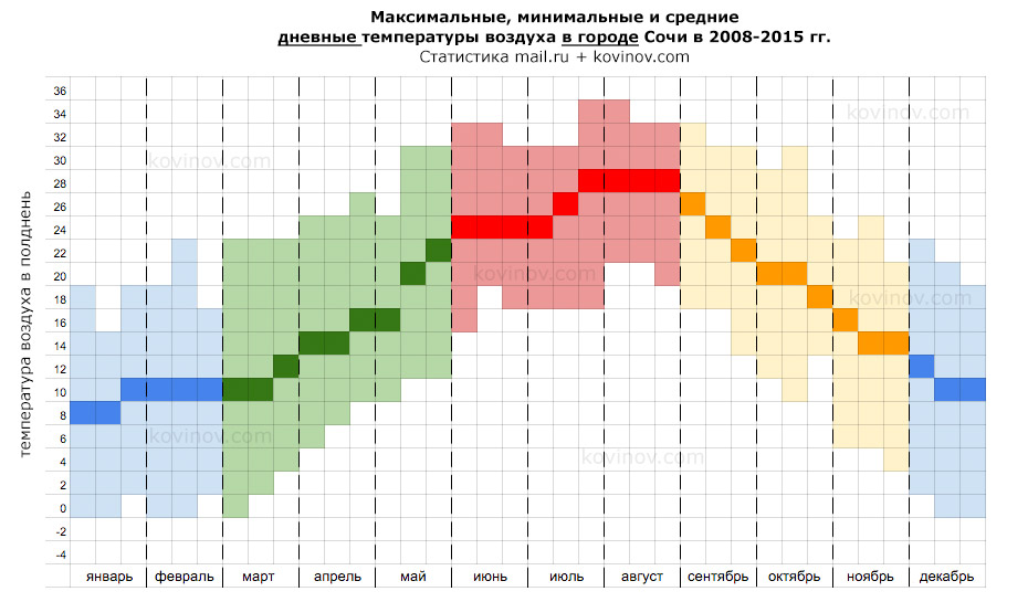 Дневная температура воздуха в городе Сочи