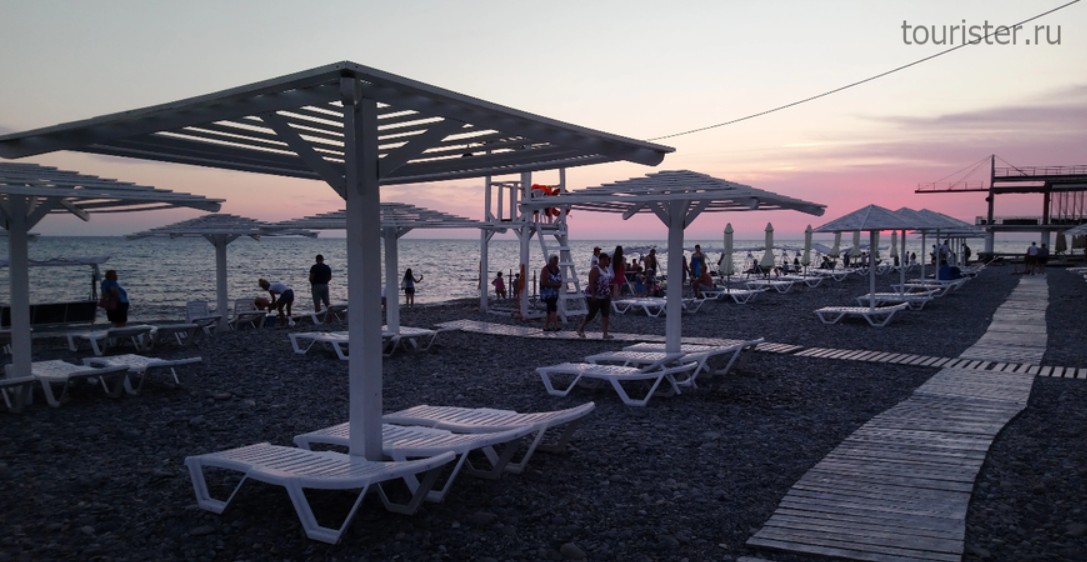 Вообще, Адлерский район уникален тем, что здесь повсеместноесть свободный доступ к морю и длинная набережная. Вы можете приблизиться кморю, чтобы искупаться в нём, практически везде.