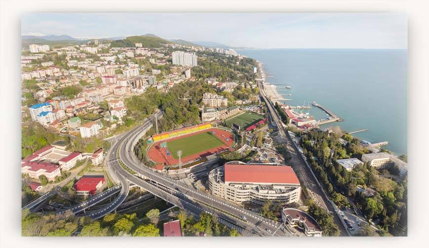 И в Лазаревском есть свой центр с красивым храмом. В Хостеэто обновлённый стадион.