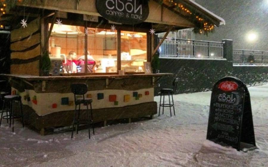 кофейня «Свои». Тут готовят вкусный кофе, который можно взять с собой. Отрицательным моментом в посещении кафе является отсутствие столиков, а также удобных мест, где можно сесть и попить кофе. Тут просто можно выпить кофе и отправиться на подъемник;