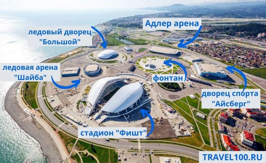 Оказавшись на Медальной площади, осмотритесь вокруг и увидите пять стадионов, на которых происходили Олимпийские игры и главный стадион «Фишт».