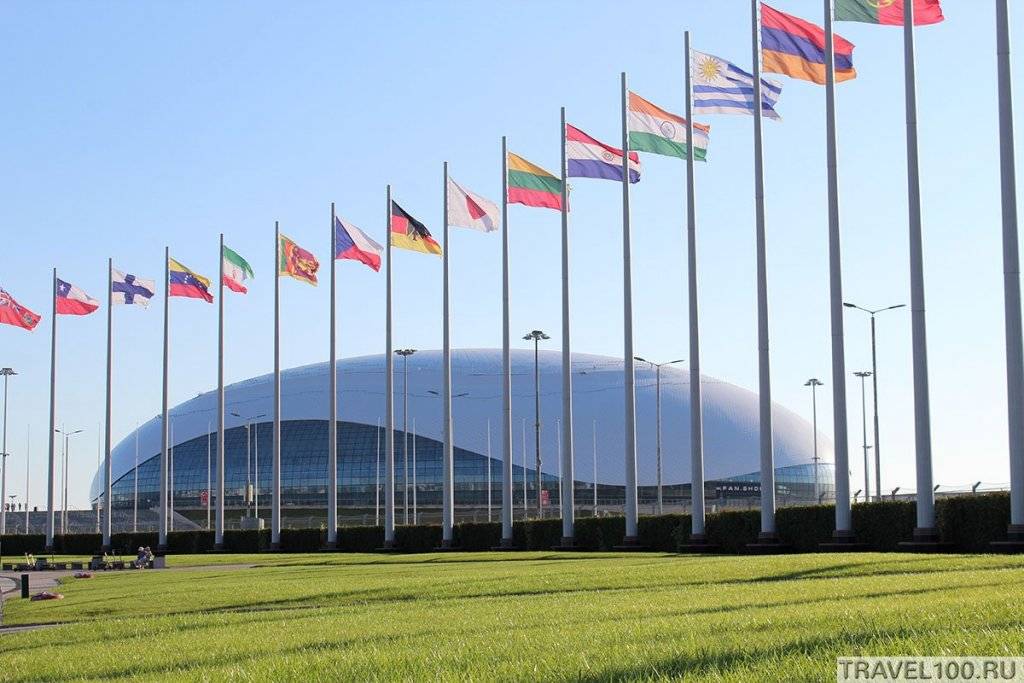 Осматривая ледовые дворцы с Медальной площади, мы движемся по часовой стрелке. И следующий стадион называется «Адлер Арена». Здесь проходили соревнования по конькобежному спорту и шорт-треку.