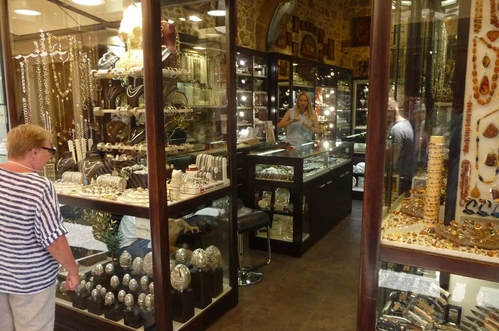 Посетить лавки, торгующие настоящими серебряными украшениями ручной работы греческих ювелиров, Вы сможете в Старом городе Родос. Но найти их будет не очень легко. Проходите мимо ярко освещенных, блистающих бриллиантами, витрин дорогих бутиков. Ищите скромную, маленькую лавку, с витриной, вывешенной прямо на стене, и старичком-ювелиром, сидящем на стульчике около ее входа. Именно в такой лавке можно приобрести серебряное украшение необычного, а может быть и единичного, дизайна, выполненное вручную.