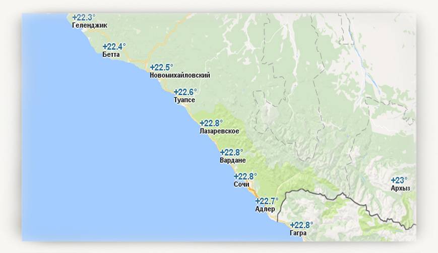 Температура воды в разных районах Сочи существенным образом не отличается.