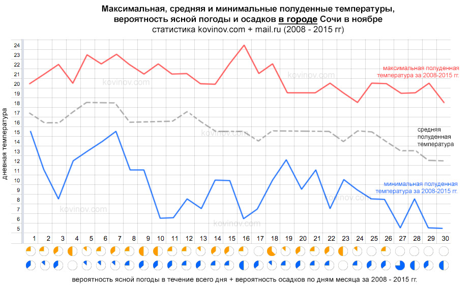 Суточная вероятность осадков в Сочивлажновлажносухоянв.февр.мартапр.майиюньиюльавг.сент.окт.нояб.дек.0 %0 %10 %10 %20 %20 %30 %30 %40 %40 %50 %50 %60 %60 %70 %70 %80 %80 %90 %90 %100 %100 %29 дек.40 %29 дек.40 %12 авг.18 %12 авг.18 %21 окт.29 %21 окт.29 %1 мая29 %1 мая29 %СейчасСейчасдождьснег с дождем