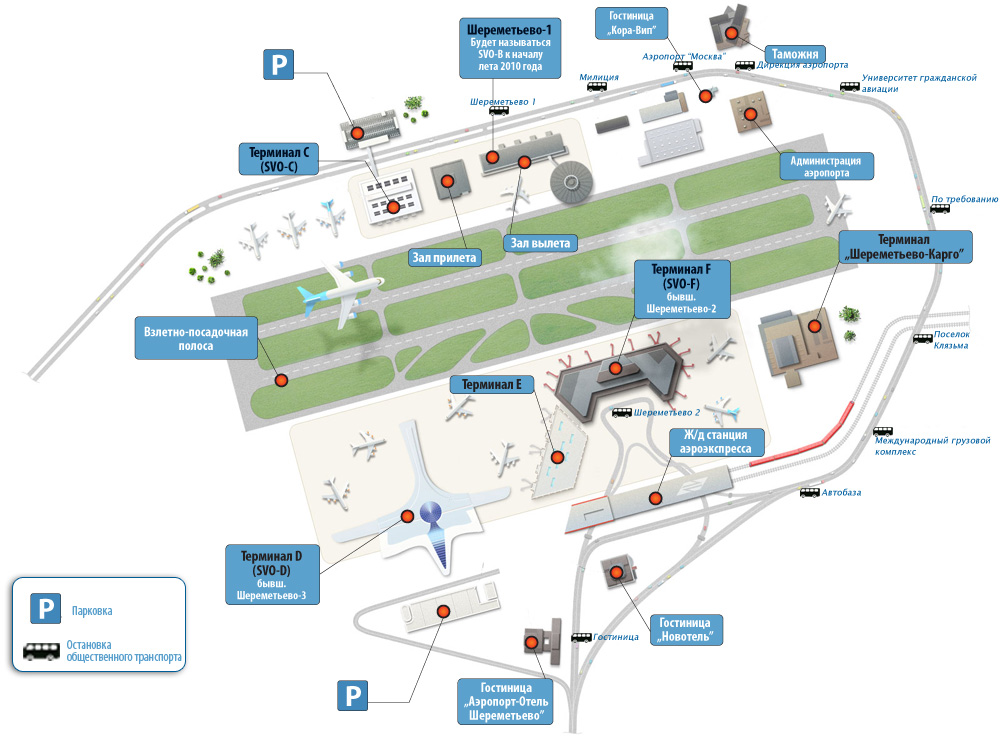 Наша стоянка осуществляет бесплатный трансфер до терминалов А, В, С (Шереметьево-1). Также обслуживаются терминалы F, E (Шереметьево-2). Подробнее о трансфере.