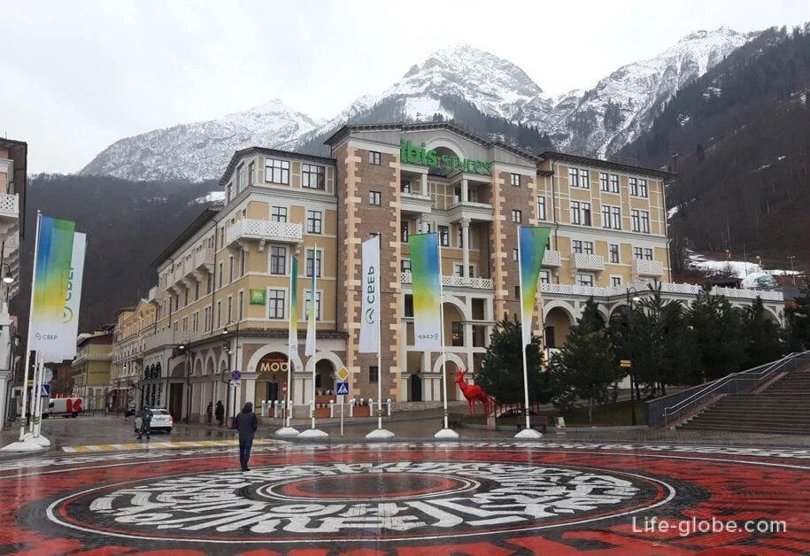 Да-да, это именно то место, откуда в 2014 году шли трансляции Олимпиады. Корпуса, где жили спортсмены и представители масс-медиа, немного изменили и превратили в полноценные жилые апартаменты. В наши дни они ждут гостей круглый год, а чтобы те не успели заскучать, к их услугам целый калейдоскоп развлечений. Смотровые площадки, спорт и бассейны, хаски-парк, родельбан, качели и мостик над пропастью, куча кафе, ресторанов, уличных развлечений.