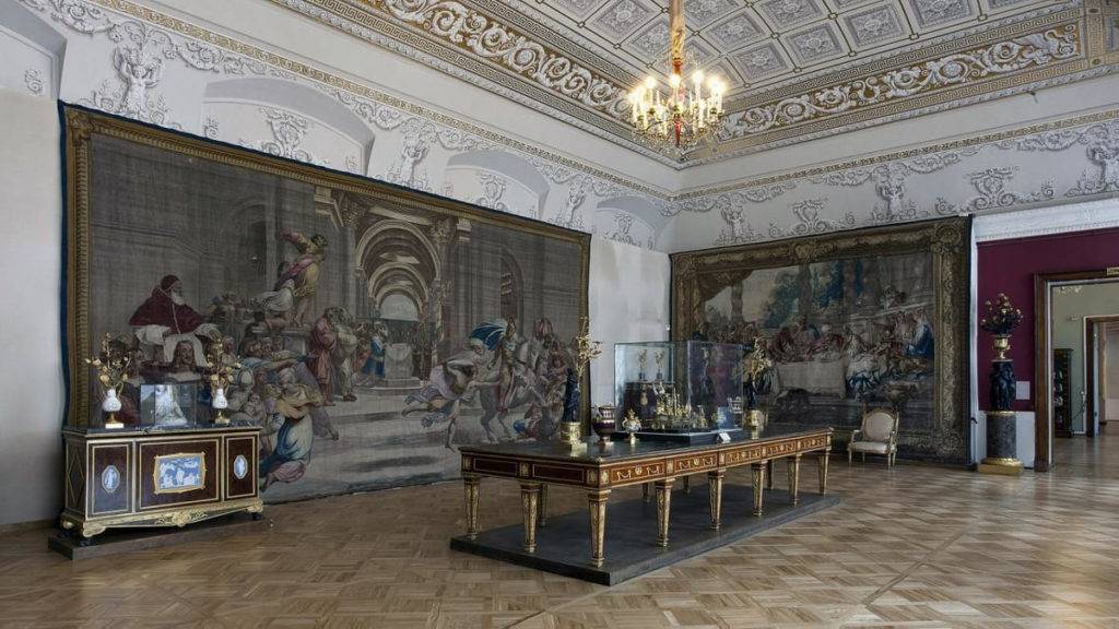 Начинается знакомство с интерьерами дворца и личными покоями императрицы. Далее залы русской культуры XVIII века, произведений искусства Англии и Франции. На 3-ем этаже Восток представляет свое искусство. Отдел нумизматики рассказывает о развитии мирового обращения денег.