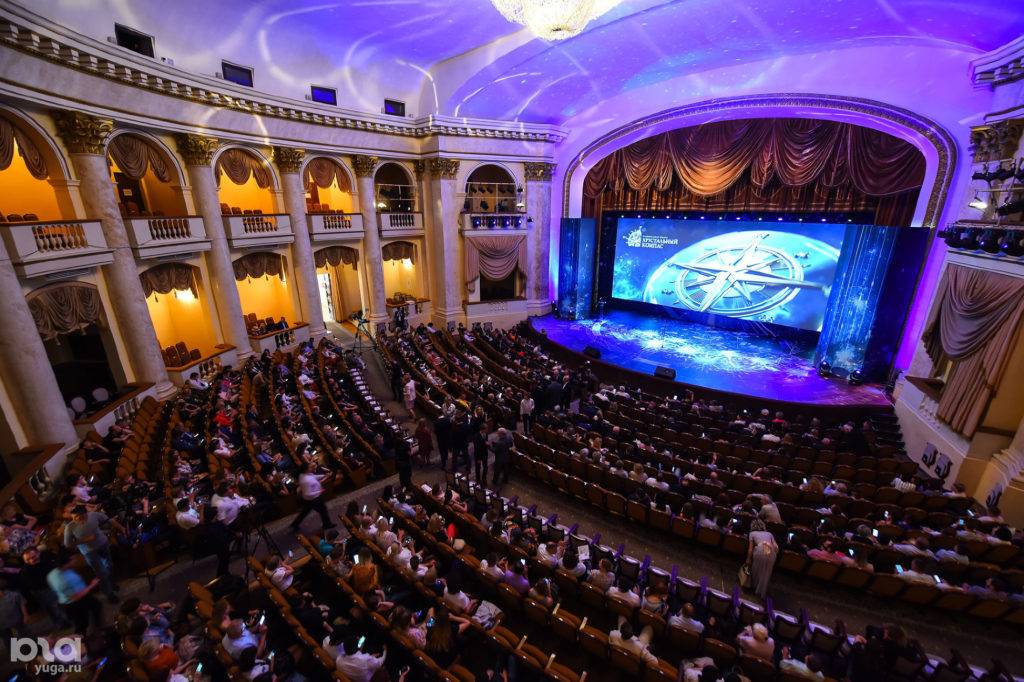 Если будет желание, можно пересчитать и убедиться, что театральный объект венчают 88 колонн. Театральный зал рассчитан почти на тысячу мест. Кресла расположены так, что каждому зрителю видно без помех, что происходит на сцене. Всё выполнено в нарядных золотисто-белых тонах.