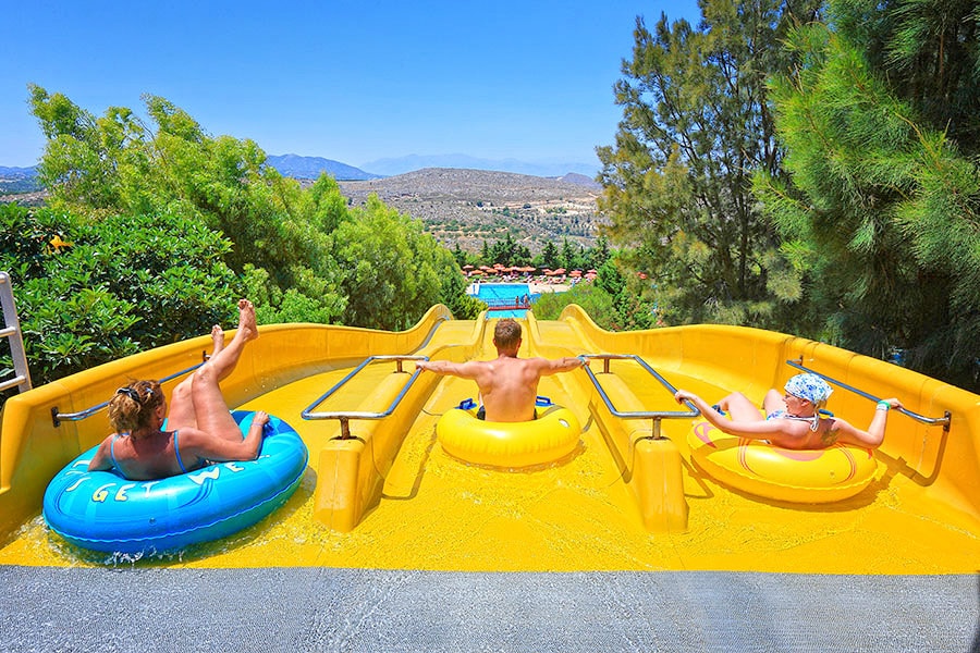 В аквапарке Крита «Water city» есть множество разнообразных спусков всех уровней сложности.