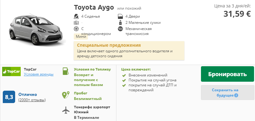 Цены на аренду авто на Тенерифе