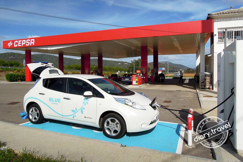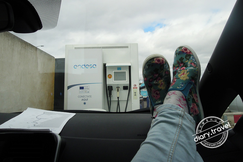 Нам это едва удалось. Зарядная станция быстрой зарядки рядом с городом Ullaro находилась на территории АЗС Cepsa и чтобы ее не проскочить необходимо свернуть на “дублер” метров за 250 до АЗС.