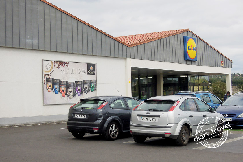 А за заправкой раскинулся супермаркет Lidl, в котором мы устроили замечательный вкусный шоппинг, затарившись вином по 1 евро за бутылку, сыром бри и камамбер, хамоном и очень вкусной свежей выпечкой.