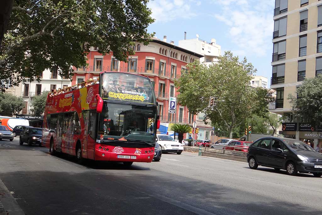 В самой Пальме курсируют туристические автобусы, которыми управляет городской центр осмотра достопримечательностей. Они ходят с 09:30 до 20:00 и делают полный круг с 18-ю остановками каждые полтора часа. Маршрут пролегает через Пласа-Майор, площадь Испании, парк-де-ла-Мар, замок Бельвер и другие знаковые столичные места. Билет стоит 21 € для взрослых, 10 € для детей до 15 лет и для пассажиров старше 65 лет.