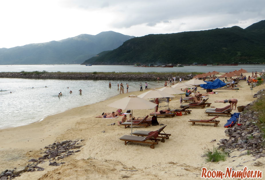 Море во Вьетнаме редко бывает красивым, туристам не рекомендуют брать маски и ласты для купания. Дно возле Нячанга песчаное, но не очень чистое. Гостиница расположена на второй береговой линии, в 200 м от неё есть городской пляж. Из-за продолжающейся реконструкции на нём пока отсутствуют лежаки и зонты. Туристы обычно заходят в воду слева от отеля, но там много ракушечника, поэтому купаться лучше в специальных тапочках.