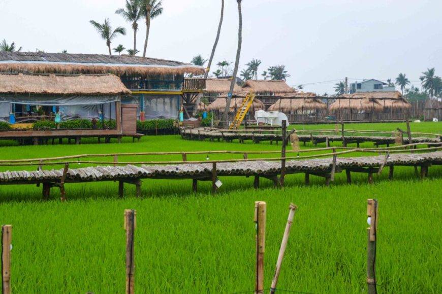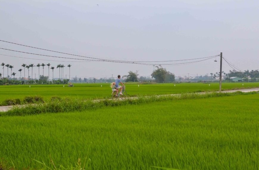 Старый центр Хойана, безусловно, прекрасен. И вы, как и мы, скорее будете здесь проводить все свои вечера. Но днем здесь не так колоритно, а вот на окраине, выделенное мной как место «здесь лучше жить» находится 100 или 200 отелей. Они все стильные, классные, почти все отели дают постояльцам бесплатно велосипед в аренду. А самое главное, отели находятся в окружении рисовых полей. Поэтому с утра вы можете взять в отеле велики и рассекать по рисовым полям. Тут же находятся классные кафе и рестораны. Над рисовыми плантациями сделаны деревянные дорожки, посередине стоят столики, мы несколько часов наслаждались кофе с видом на рисовые поля. Ведь здесь живет много птиц, конечно, аист наш фаворит.