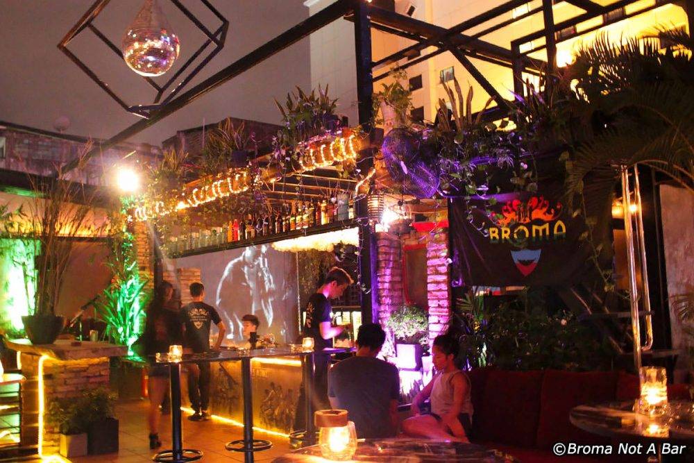 Любимый притон место среди экспатов, Broma Not A Bar занимает четвертый этаж старого французского колониального здания в районе Хо Ши Мин Сити 1. Доступ через шаткую лестницу, этот бар шероховатый стиль регулярно проводятся живые музыкальные представления и тематические танцевальные вечеринки с ди-джеи резиденты играя минимален, дип-хаус и техно музыки до 02:00. Напитки-мудрый, Broma служит фирменные коктейли, sangrias, вина, и более 30 виды пива из Бельгии, Германия, Испания, и Мексика. между тем, бар закуска здесь состоит из азиатских и западных фаворитов, такие как дровяная печь пицца, рулеты, и чипы.