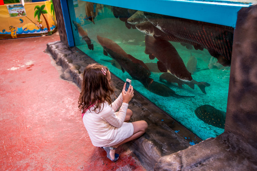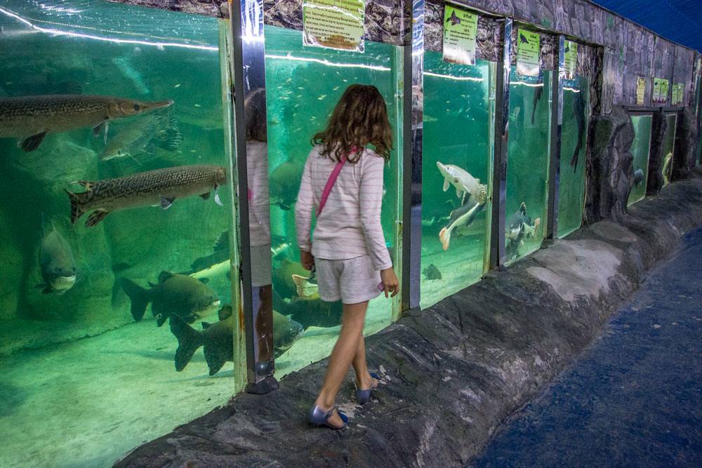 Изюминка данной зоны в специально оборудованных отверстиях, в которые можно просунуть руку и коснуться проплывающих мимо обитателей. Конструкция отверстия безопасна и ничего не прольется наружу. Рискнете отправить свою руку в логово амазонских рыб?